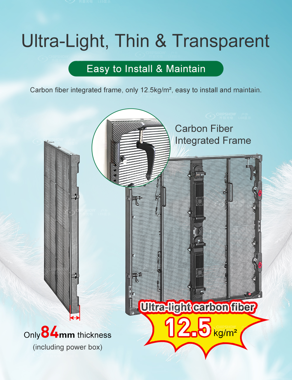 1 Sottile e leggero: la serie C-Carbon adotta un telaio integrato in fibra di carbonio che pesa solo 12,5 kg/㎡; ciò ne facilita l'installazione e la manutenzione;