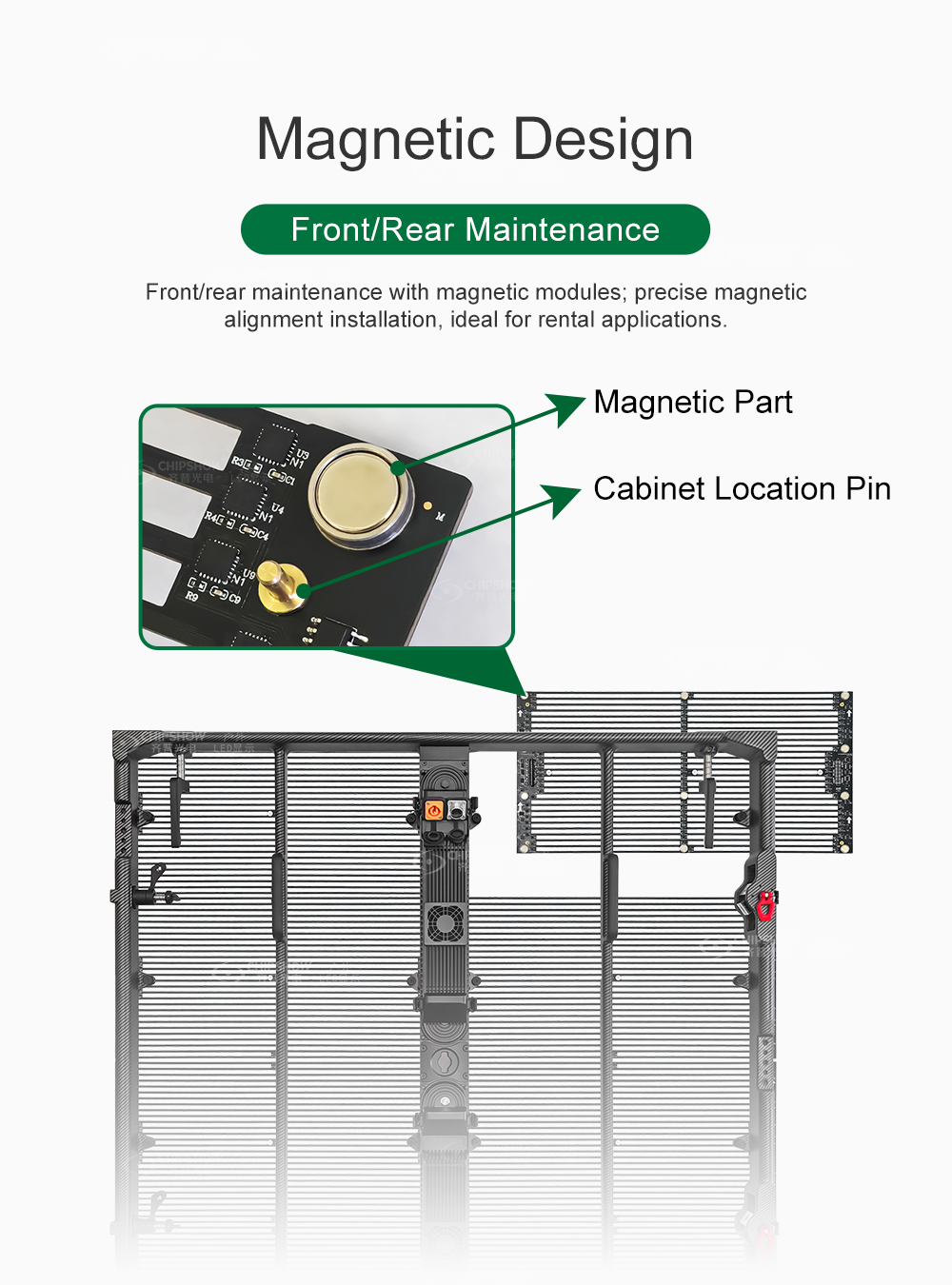 3 Design magnetico: la serie C-Carbon supporta la manutenzione anteriore e posteriore; tramite moduli magnetici, gli armadi possono essere posizionati con precisione durante l'installazione; e il metodo di installazione a noleggio è molto conveniente;
