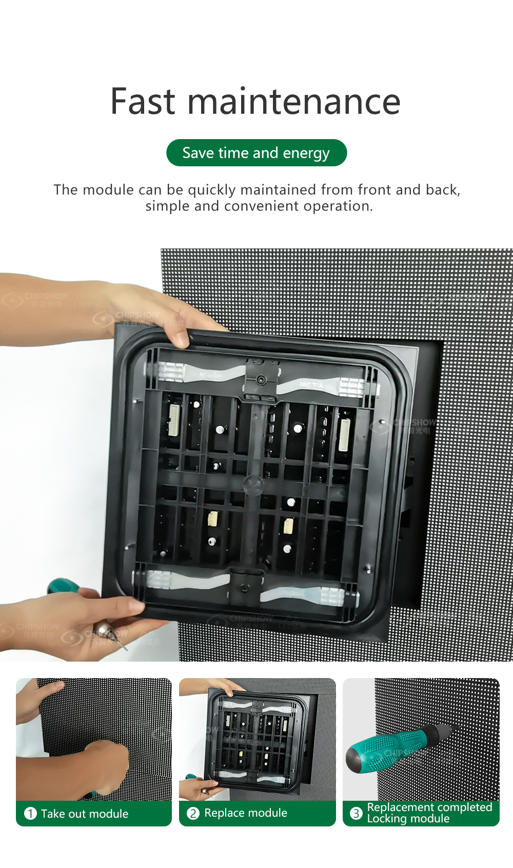 1. Planarità: armadio in alluminio pressofuso ad alta resistenza ADC12, che può essere montato e smontato frequentemente senza deformazioni, buona planarità. 2. Pratico: design semplice e pratico, maniglia solida, comoda chiusura rapida, semplice e pratica. 3. Design magnetico: il modulo magnetico può essere mantenuto dalla parte anteriore e posteriore; il magnete tra gli armadi è posizionato e installato con precisione ed è molto conveniente per l'installazione a noleggio. 4. Alta protezione: protezione angolare + sporgenza anticollisione; Protezione completamente automatica dei LED circostanti per evitare danni durante il trasporto e l'installazione; 5. Doppio backup: è possibile selezionare il doppio backup elettrico e del segnale per risolvere efficacemente i seguenti problemi: schermo nero, errore di visualizzazione e immagine instabile. 6. Volume di vendite globale di oltre 5000 m². Stock pronto e consegna veloce. 7. Applicazioni multiple: supporta più metodi di installazione come il montaggio a pavimento e l'installazione sospesa e si concentra sulla fornitura ai clienti nei settori dell'energia, della giustizia, militare, dei trasporti, della pubblica sicurezza, della finanza, dell'IT, ecc. con soluzioni globali per la visualizzazione , intelligenza, informatizzazione e sistemi di visualizzazione LED digitali.