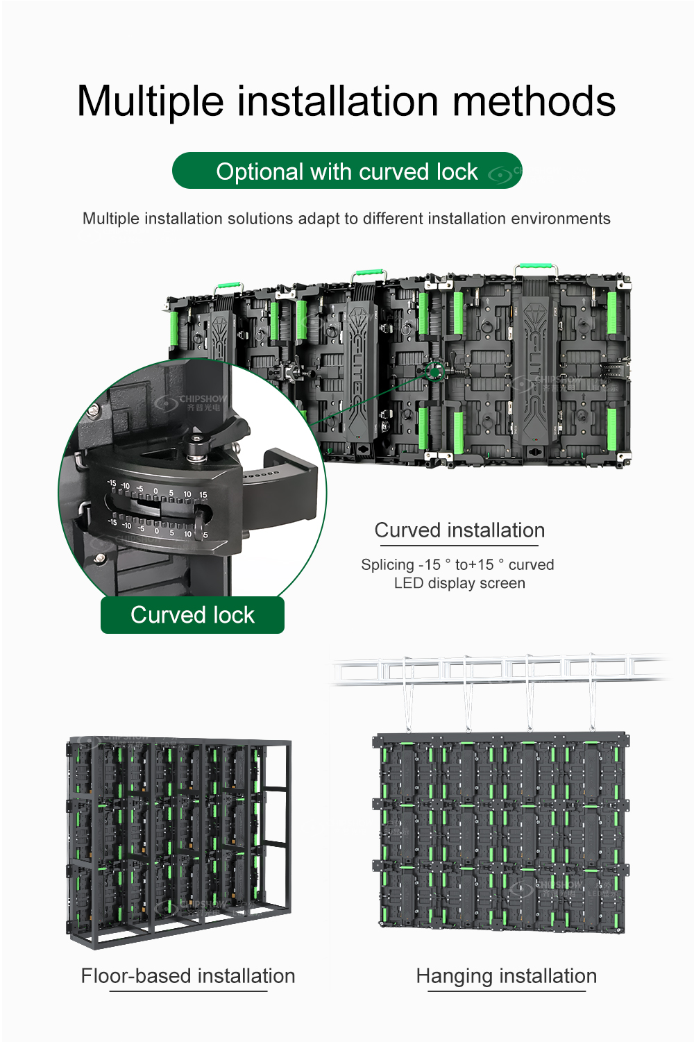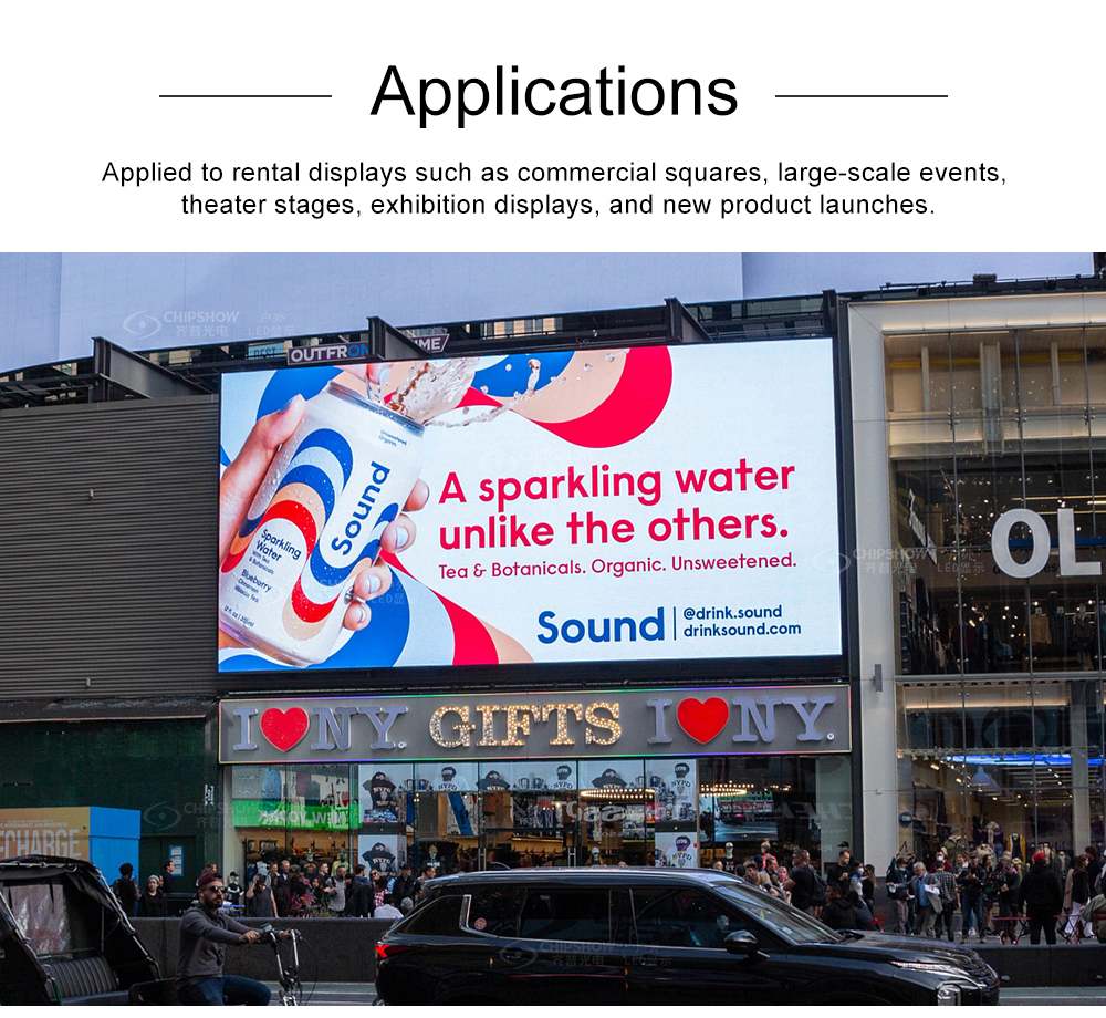 Applicato a display a noleggio come piazze commerciali, eventi su larga scala, palcoscenici teatrali, esposizioni fieristiche e lancio di nuovi prodotti.