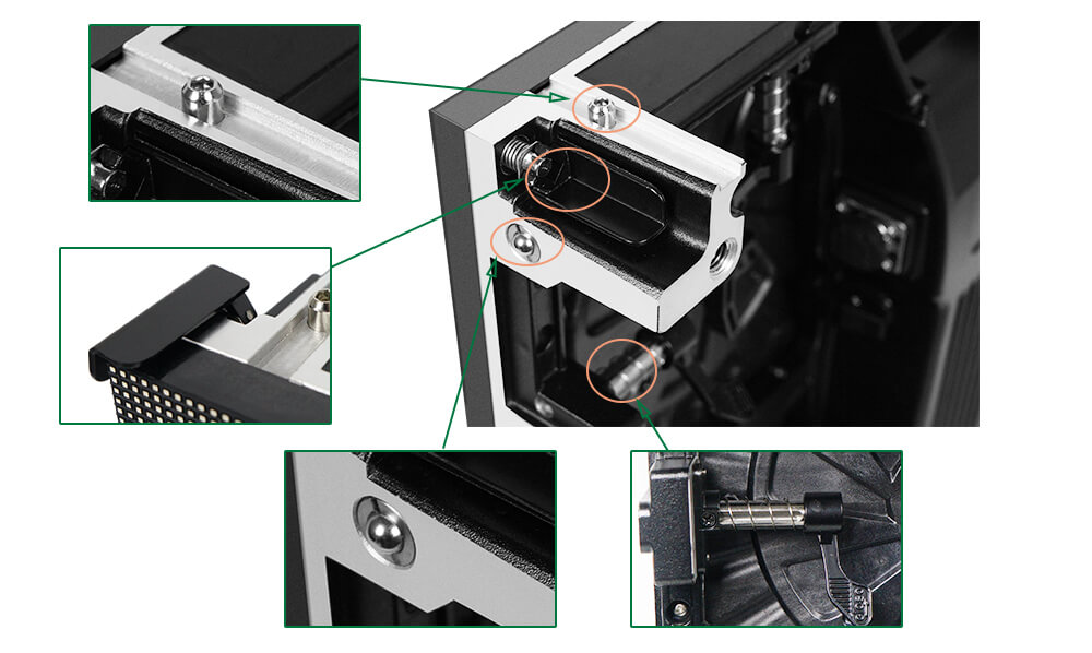 C-Lite-D è uno schermo LED a noleggio di fascia alta per una varietà di attività, la sua scatola di controllo può essere estratta tramite serrature e il cuscinetto di protezione impedisce che le lampade agli angoli si danneggino, ti offrirà una migliore esperienza di installazione e smontaggio.