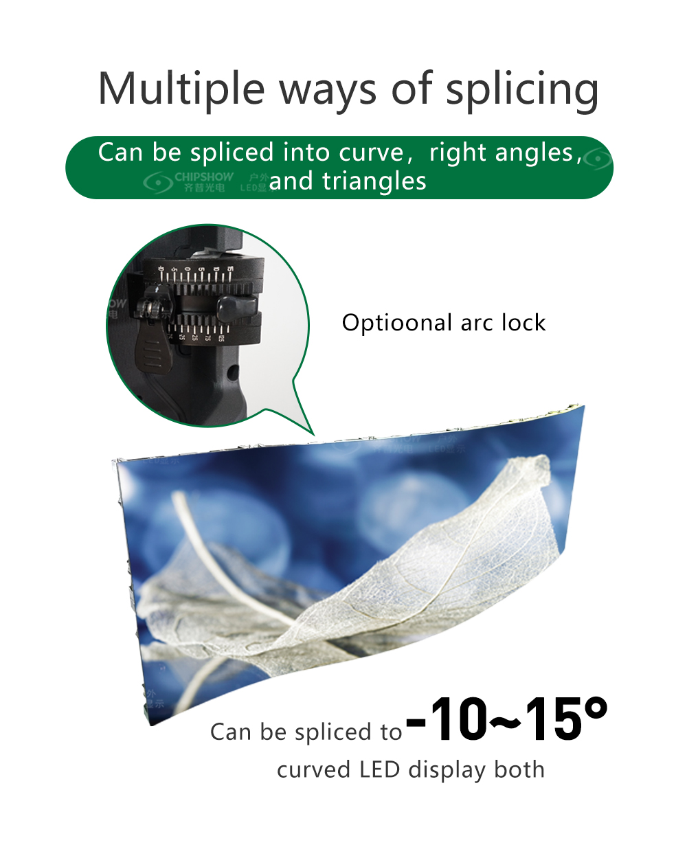 4. Blocco curvo opzionale, in grado di unire schermi di grandi dimensioni con curvatura di -10°~15°, angolo di 90°, ecc.;
