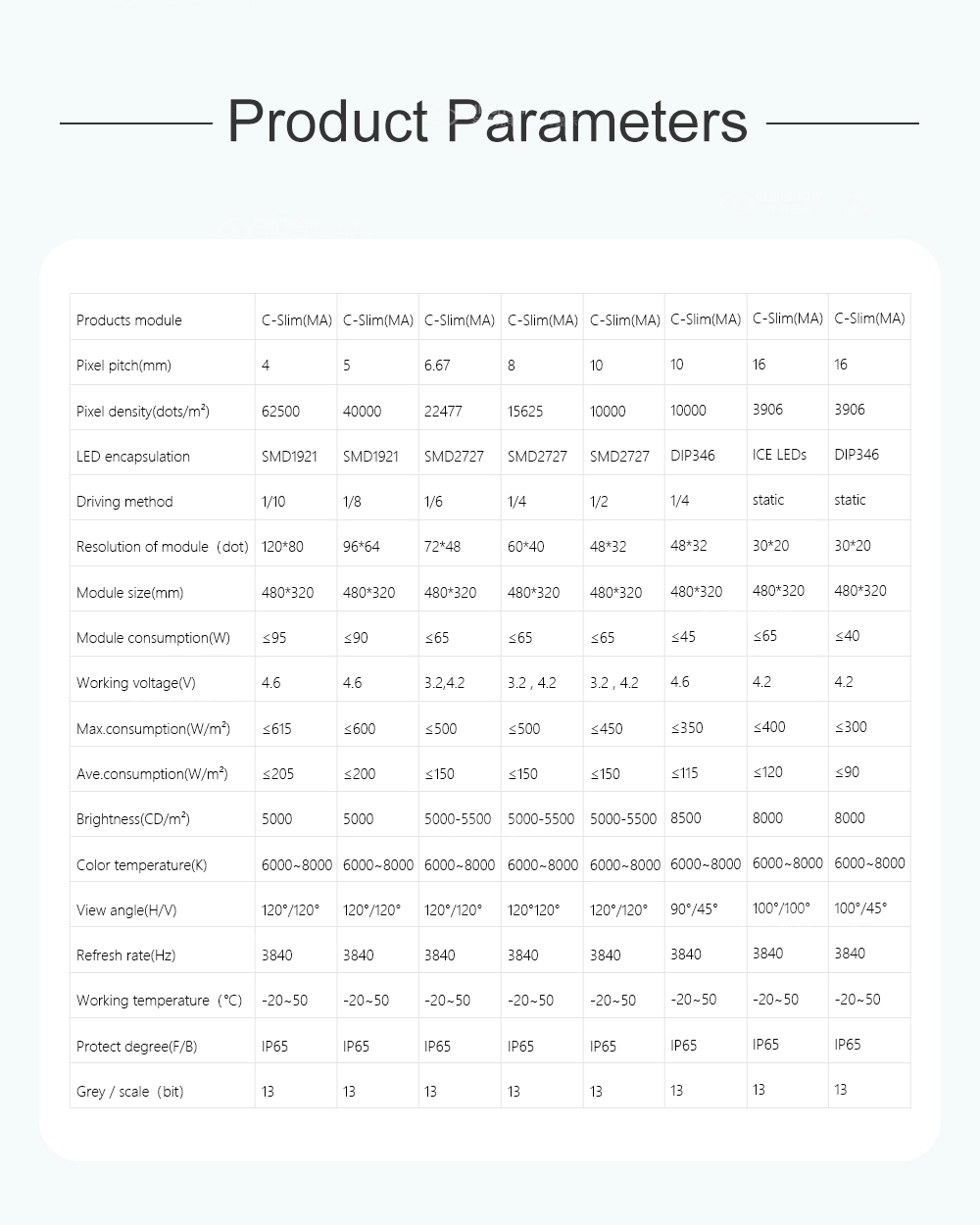 Profilo di potenza pratica : Ottimizzato per l'uso commerciale standard con consumo energetico gestibile (≤500 W/m² max sui modelli principali), evitando il sovrapprezzo energetico degli schermi ad altissima luminosità.