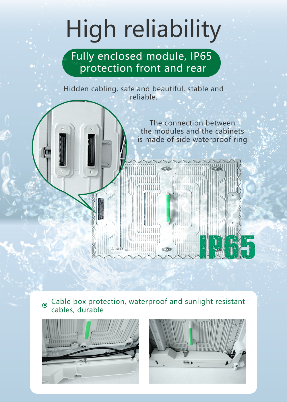 IP65 per tutte le stagioni : Progettato con anelli impermeabili indipendenti e moduli sigillati, garantisce che il display resista a pioggia e polvere per un funzionamento commerciale affidabile.