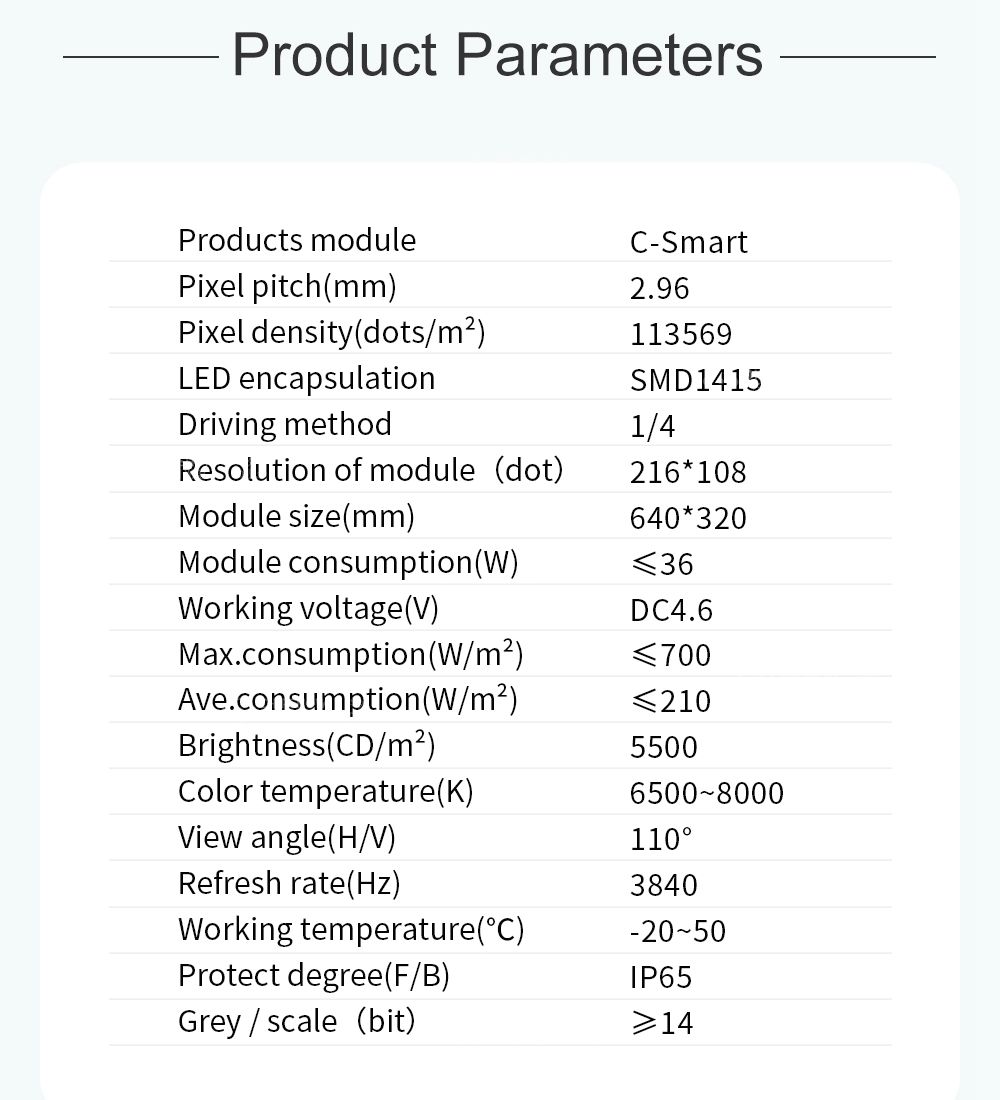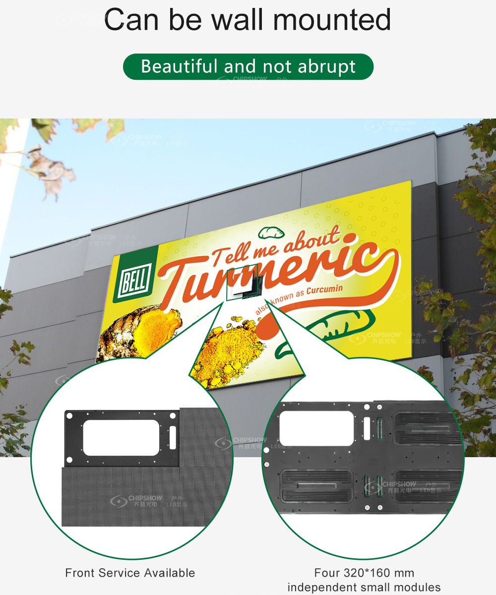 2 Installazione montabile a parete: gli schermi LED intelligenti C-Smart-4IN1 sono solitamente montati a parete senza essere invadenti; tutti i componenti, inclusi i moduli LED, le schede del sistema controller e gli alimentatori, supportano il servizio anteriore;