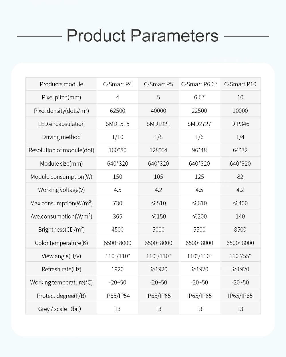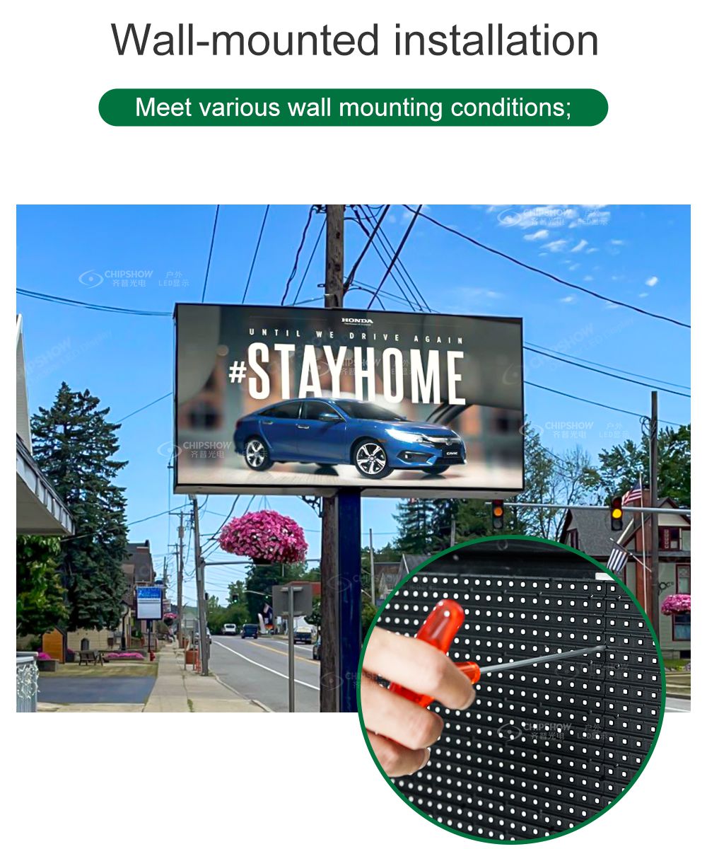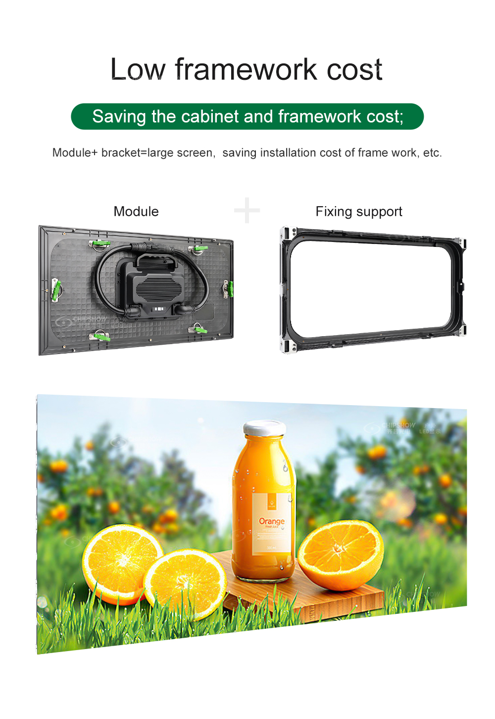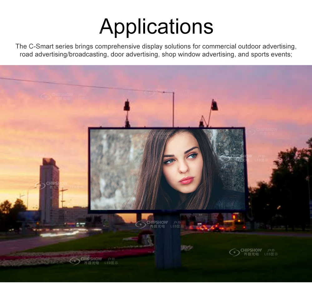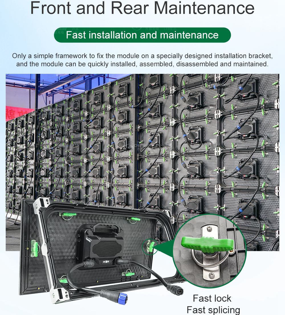 C-Smart è un semplice schermo LED integrato con manutenzione anteriore e posteriore. Nessun design del cabinet, è necessario solo un semplice telaio per contenere i moduli, il che può ridurre notevolmente i costi di installazione.