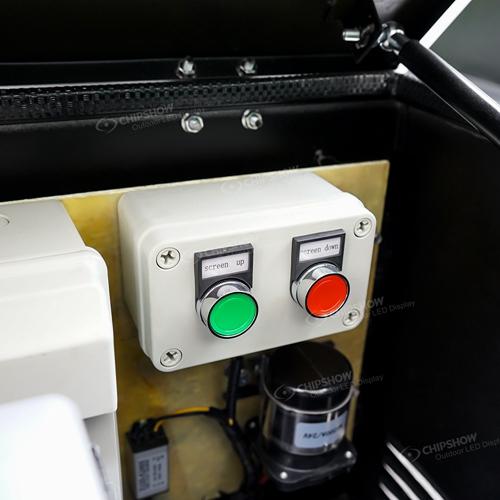 5. Sollevamento idraulico + struttura rotante; L'intero schermo si libra a 1 metro di altezza e ruota a 360° per riprodurre le informazioni a qualsiasi altezza e angolazione.