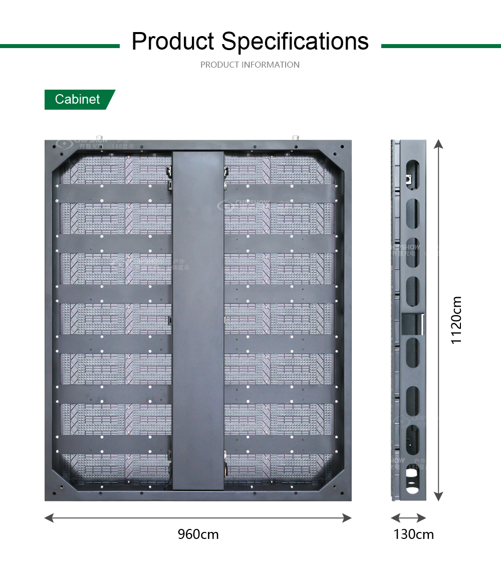 La serie C-lite è una tipologia di schermo LED a noleggio altamente conveniente, ideale per diverse attività; i cabinet in alluminio pressofuso con chiusure rapide e comodi connettori per cavi facilitano l'installazione e lo smontaggio in modo rapido e semplice. È inoltre possibile aggiungere chiusure a scala per realizzare uno schermo LED curvo. Caratteristiche: 1. Pixel pitch: 2,6, 2,97, 3,91, 4,81 mm (esterno e interno) 2. Dimensioni: 500*500/500*1000mm 3. Installazione magnetica dei moduli (in interni), montaggio rapido e smontaggio rapido. 4. Gli armadietti di lotti diversi hanno le stesse dimensioni, sono solidi e durevoli e non si deformano facilmente. 5. Mobile in alluminio pressofuso, planarità elevatissima, planarità dell'intero mobile ≤0,01 mm. 6. Dispositivi con alimentazione e dati connessi rapidamente, lunga durata, 500.000 volte di estrazione e di collegamento. 7. Facile da usare, basta un clic per illuminare lo schermo. Applicazione: Schermi a noleggio per matrimoni, conferenze, concerti, eventi di lancio e ogni genere di attività; possono essere utilizzati anche come soluzioni di visualizzazione mobili e permanenti, come schermi a LED per rimorchi mobili e schermi perimetrali per stadi.
