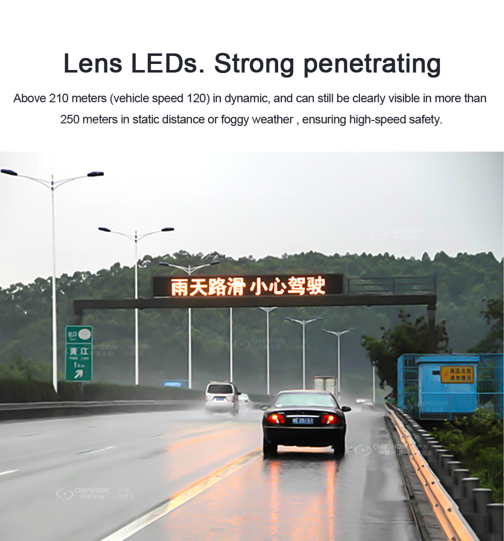 Alta luminosità e risparmio energetico: alimentatore a bassa tensione da 2,8/3,8 V, lampada ICE ad alta luminosità, regolazione automatica della luminosità; Display HD: superiore a 210 metri (velocità del veicolo 120) in dinamica, e può essere ancora chiaramente visibile a più di 250 metri di distanza distanza statica in caso di nebbia; Può ancora visualizzare le condizioni della strada alta definizione per avvisare e guidare i veicoli al passaggio in modo sicuro ed efficiente; Dissipazione efficiente del calore: ampio flusso dissipazione del calore a pressione negativa nell'armadio, efficiente scarico del calore, e funzionamento più stabile del display LED; Ricarica solare+9,6 KWH di grande capacità batteria, che può alimentare continuamente il display LED 365 giorni all'anno; Sollevamento idraulico+struttura rotante; IL l'intero schermo si trova a 1 metro di altezza e ruota a 360° per riprodurre le informazioni a qualsiasi altezza e angolo. Struttura di traino a doppia sicurezza, sicurezza 10mm catena, anello del gancio di traino a 80 livelli con trascinamento sicuro e conveniente. Il connettore di segnale a 7 core può controllare EMARK indicatore di rimorchio certificato, luce di stop, luce di svolta e luce di posizione nel intero veicolo. Supporta il posizionamento GPS; Sostieni l'U riproduzione da disco/telefono cellulare/tablet/computer/4G/WiFi; Supporta video e immagini riproduzione come MP4/AVI/jpg/; Viene utilizzato principalmente per portali ad alta velocità e Guida al traffico con frame F; Segnali di avvertimento di sicurezza per veicoli di riparazione stradale, veicoli per la pulizia, veicoli per servizi igienico-sanitari e altri veicoli per operazioni stradali.