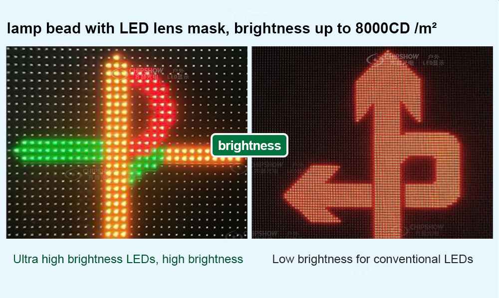 1 Alta luminosità: ogni modulo LED adotta perline LED con filtri per lenti ottiche; il livello di luminosità può raggiungere 8000 CD/㎡;