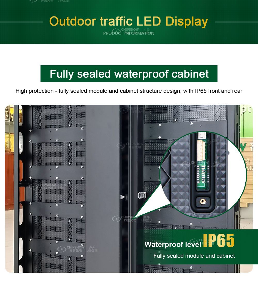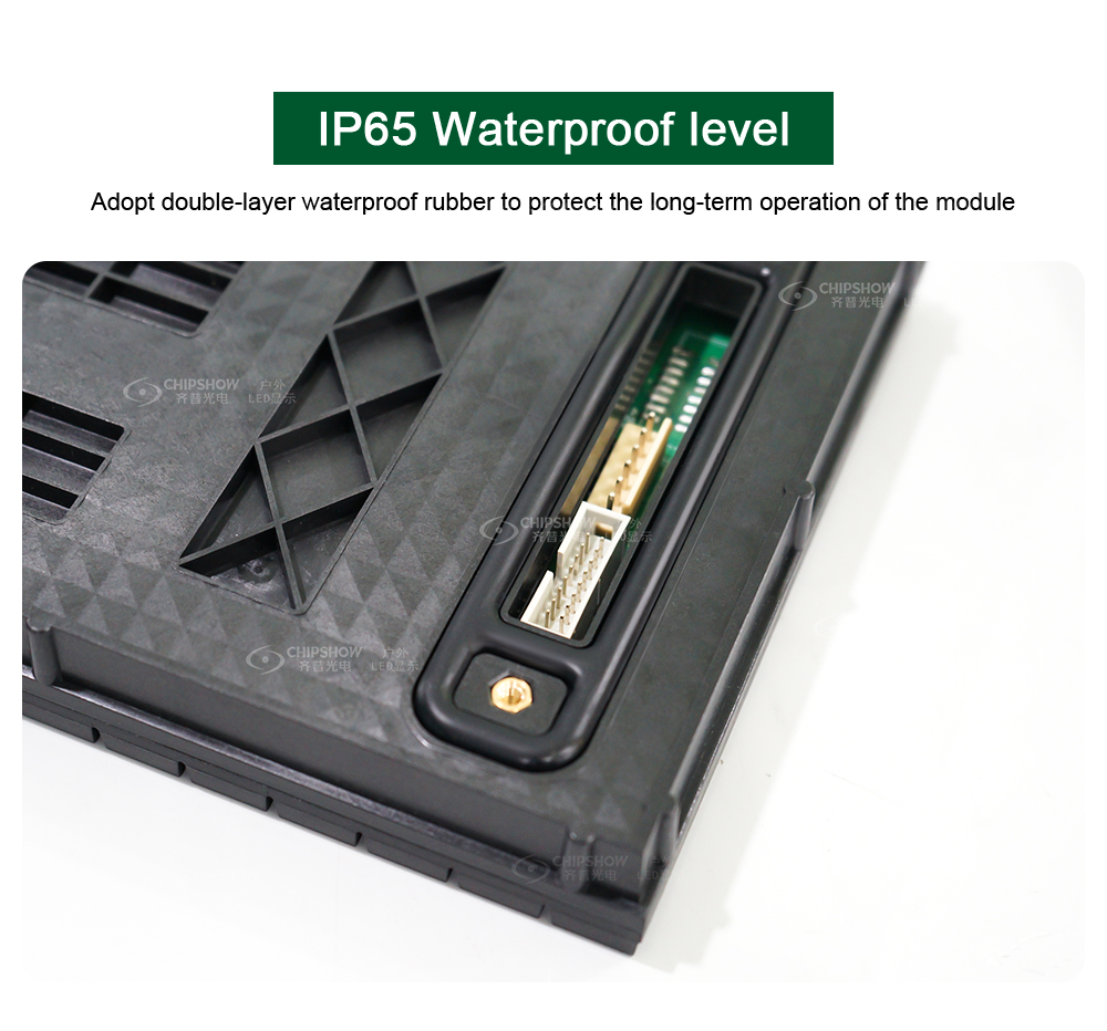4 Protezione elevata: ogni modulo LED e ogni armadio sono completamente chiusi e sia la parte anteriore che quella posteriore dello schermo hanno un grado di protezione IP65;