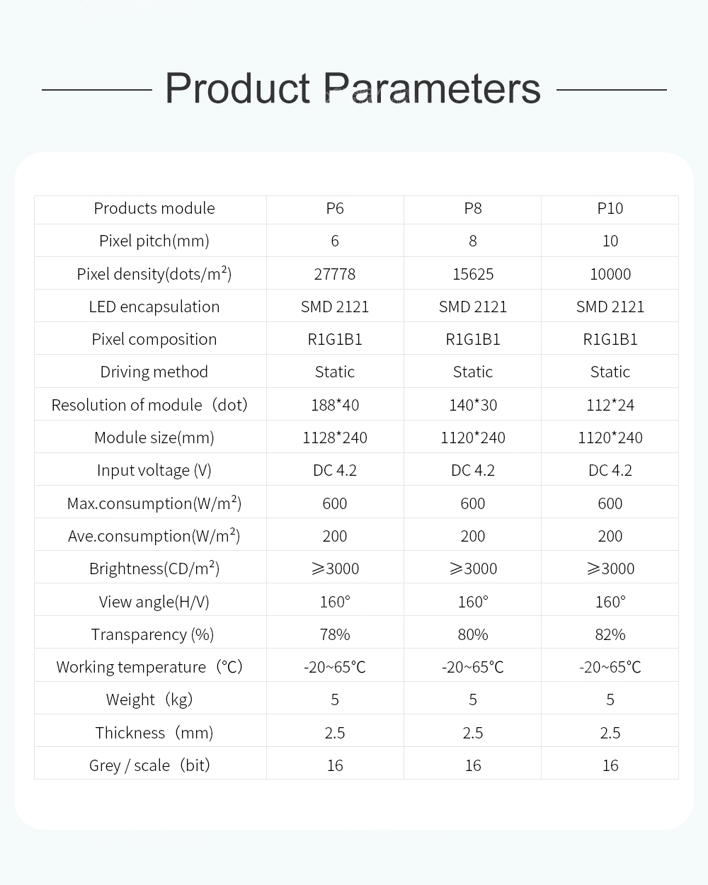 7 Ampia applicazione: il display con pellicola LED è molto comune nei punti vendita commerciali interni ed è ampiamente utilizzato per la pubblicità su supporti trasparenti, come facciate continue in vetro, pareti acriliche, guardrail in vetro...