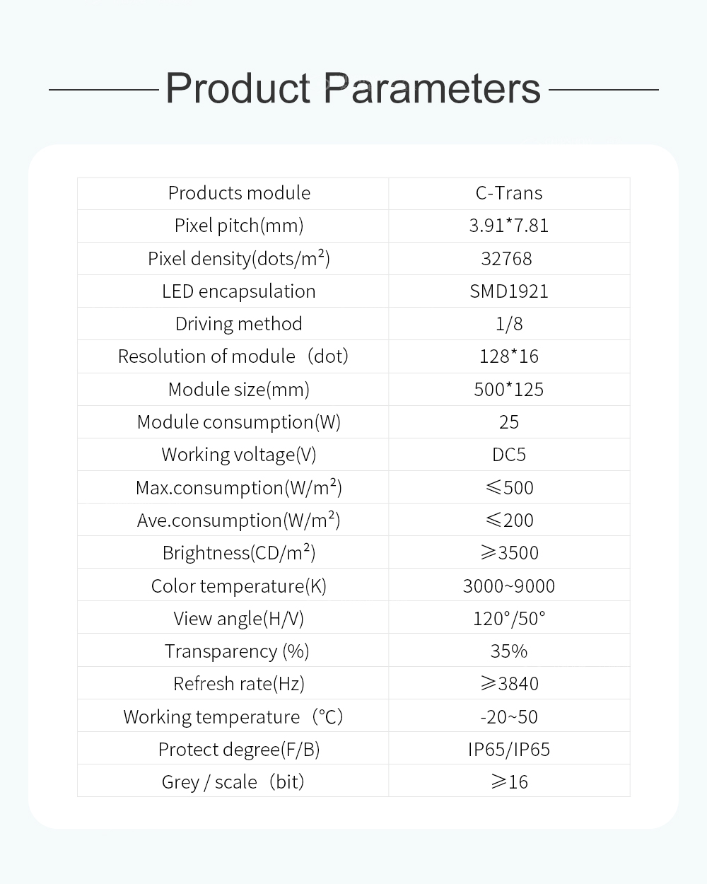 Schermo LED trasparente da esterno C-Trans P5.35Se sei interessato ai nostri prodotti e vuoi saperne di più, lascia un messaggio qui, ti risponderemo il prima possibile.