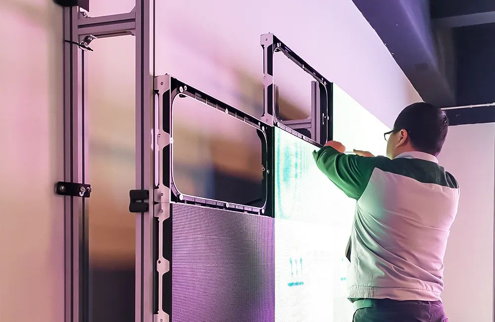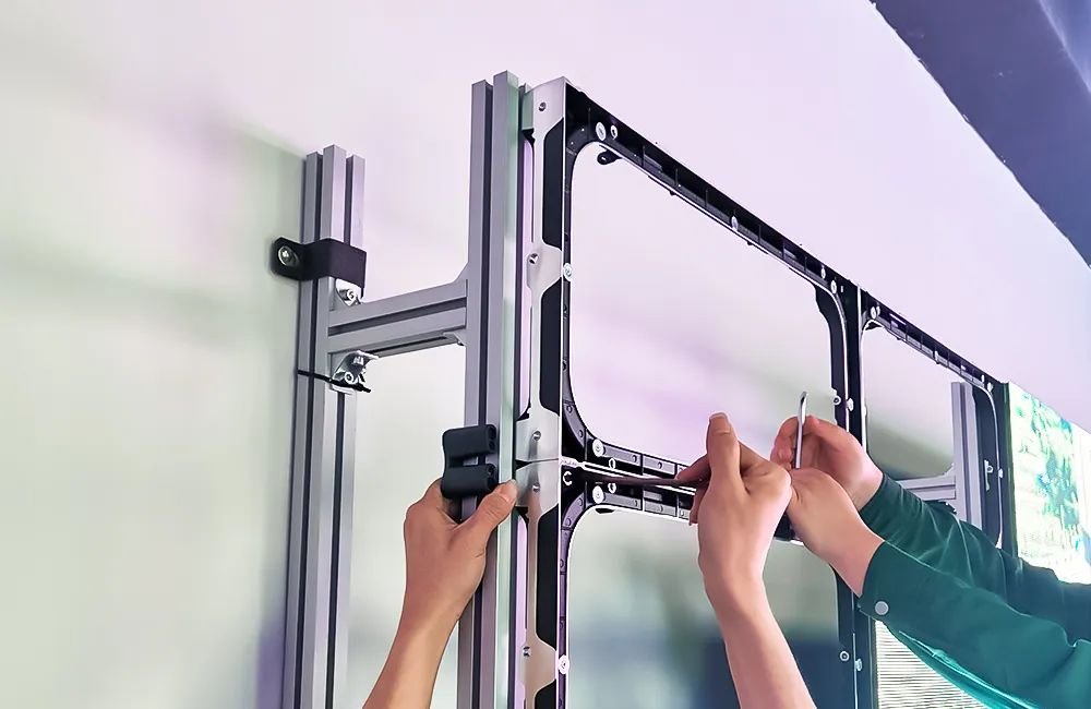 4. La struttura di assemblaggio e installazione del prodotto adotta il tubo quadrato standard globale. Durante l'installazione, è sufficiente fissare il tubo quadrato alla parete e utilizzare il montaggio manuale per collegare le piastrelle dello schermo. Non è necessario rifare la scatola e la struttura.