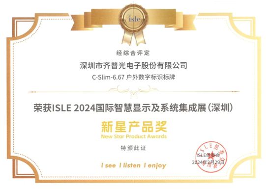 Lo schermo luminoso C-Slim ICE ha vinto il Rising Star Product Award.