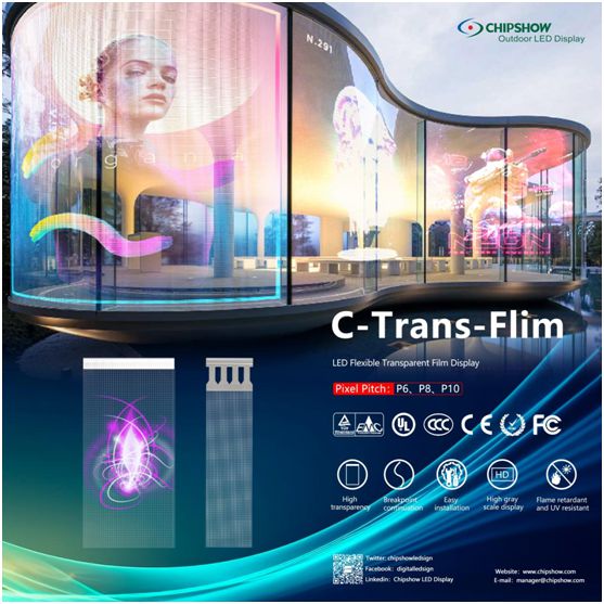 Chipshow dispone anche di una propria serie di schermi LED trasparenti/olografici. Lo schermo olografico a LED è molto adatto per la visualizzazione commerciale.