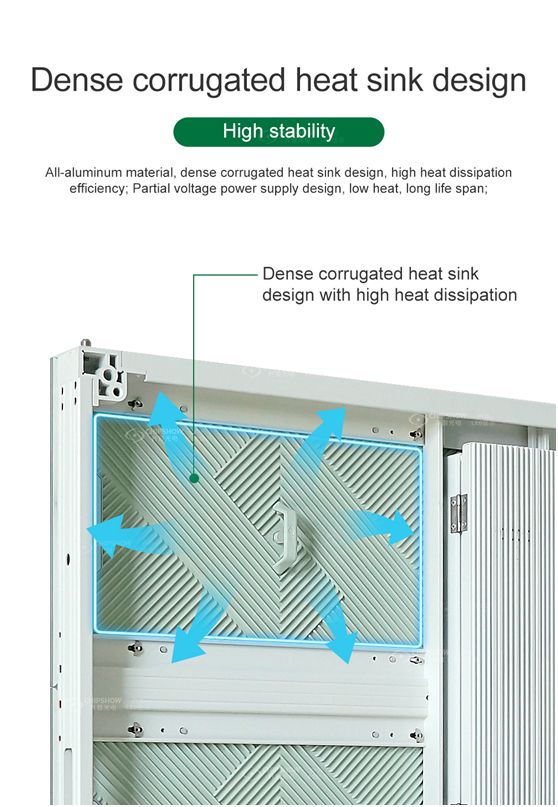 Inoltre, i prodotti Chipshow hanno un sistema di dissipazione del calore a pressione negativa a doppia elica sviluppato internamente e un design di dissipazione del calore denso con scanalatura posteriore, che può garantire una dissipazione del calore stabile e sicura senza aria condizionata. Dopo anni di esperienza nei circuiti, esistono soluzioni di circuiti migliori nel settore.