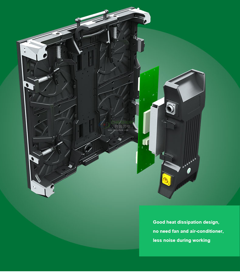 Abbiamo realizzato alcuni design innovativi all'interno del display LED, che gli consentono di ottenere una buona dissipazione del calore senza ventola o condizionatore d'aria.