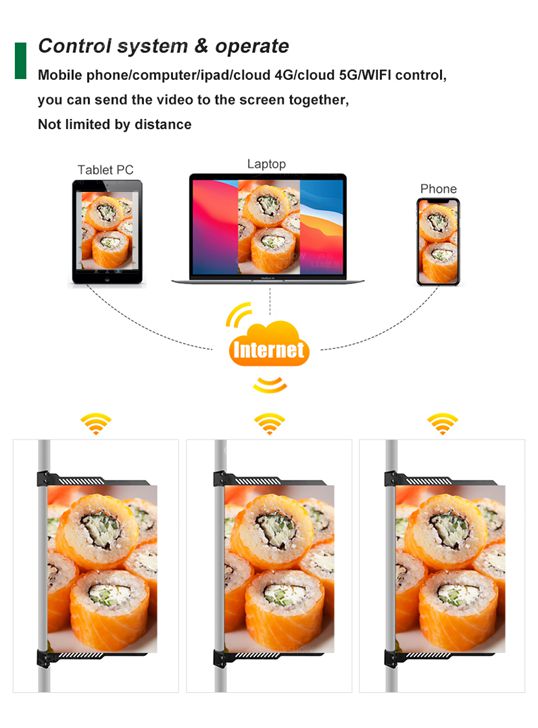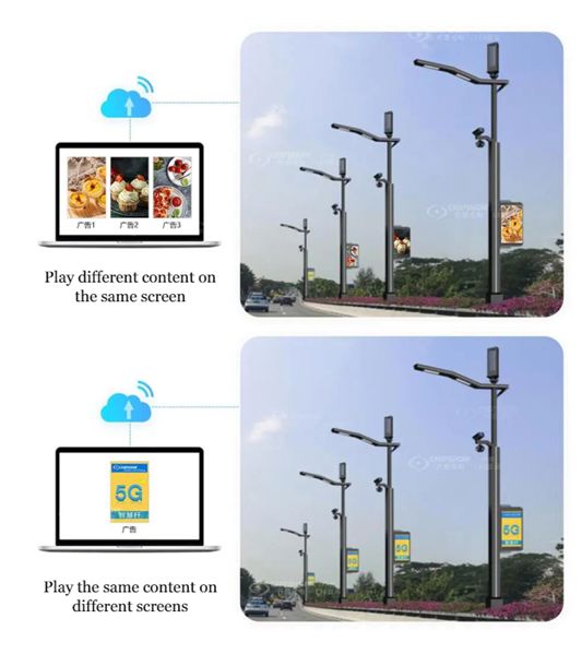 Lo schermo intelligente per palo luminoso a LED per esterni è dotato di un sistema di controllo e monitoraggio remoto, in modo che gli operatori possano gestire e controllare il contenuto del display, la luminosità e le funzioni interattive in tempo reale. Inoltre, gli schermi LED a palo luminoso per esterni possono anche essere personalizzati in base alle esigenze del cliente, come dimensioni, luminosità, colore, ecc., per soddisfare i requisiti di visualizzazione di diverse scene ed esigenze.